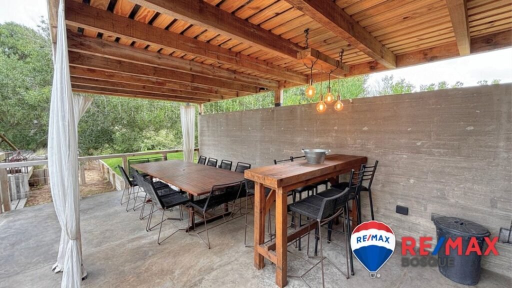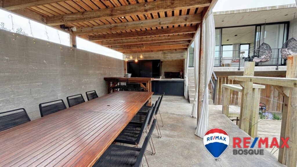 - Tres cocheras: una cerrada con portón automático y dos semicubiertas