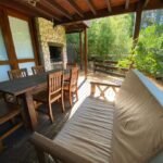 - Deck techado con parrilla, mesa, sillas y sillón de madera