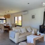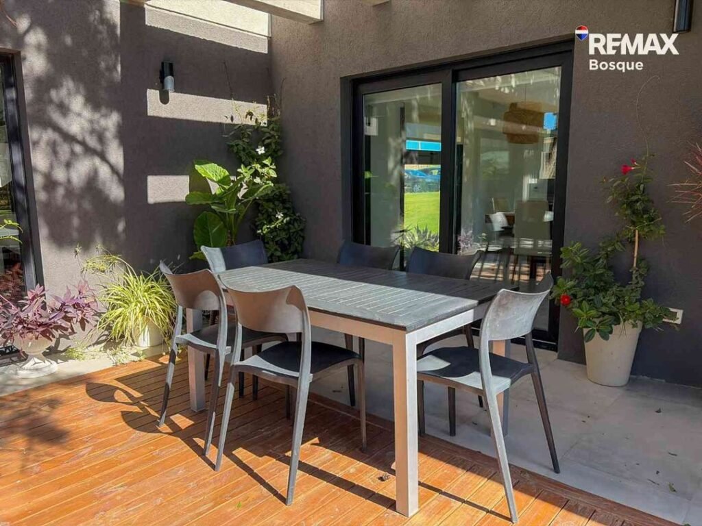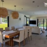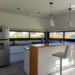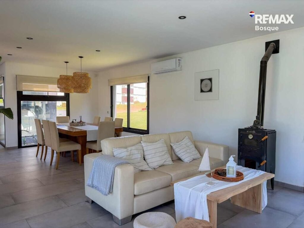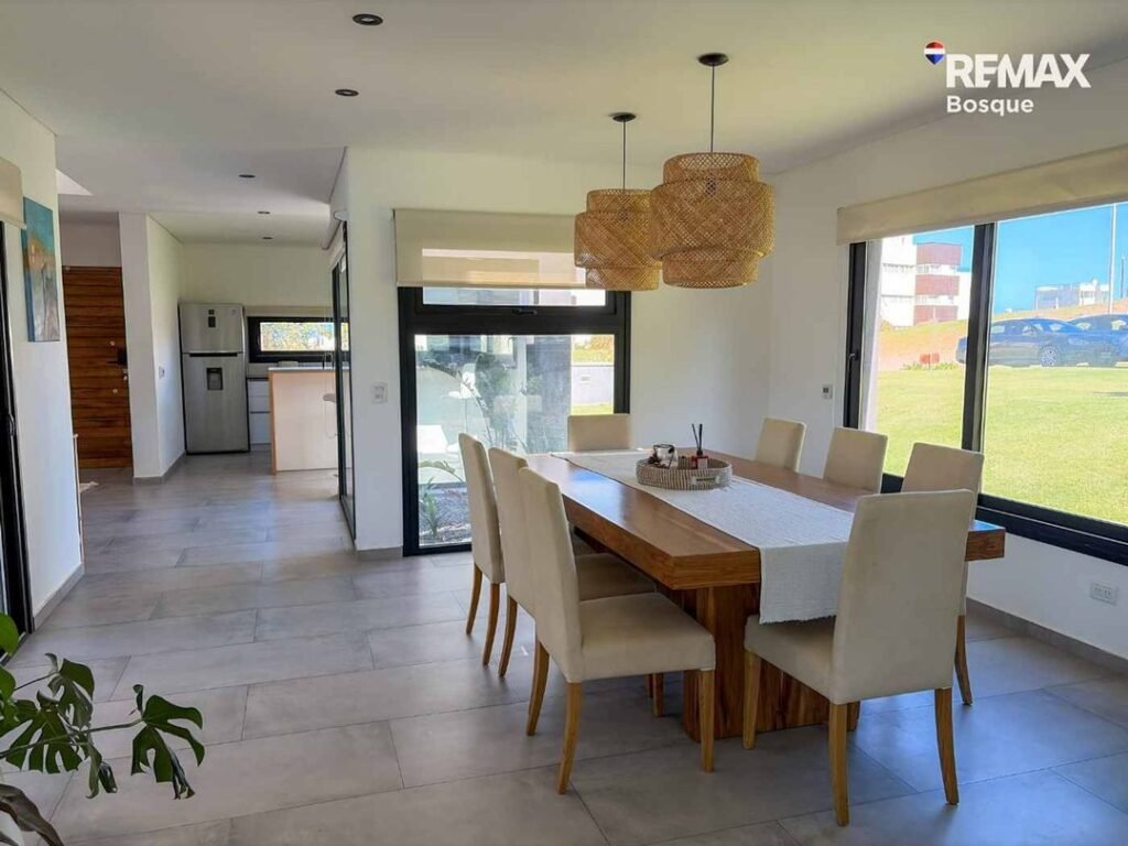 Al ingresar, nos recibe un amplio living-comedor, luminoso y con grandes aberturas de PVC con  DVH, que integran el interior con el bosque y el jardín. La cocina completa con desayunador se conecta de forma natural con los espacios sociales.